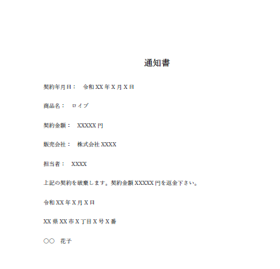 クーリング・オフは法律上書面で行うことが必要とされていますので、必ず書面で通知しましょう。