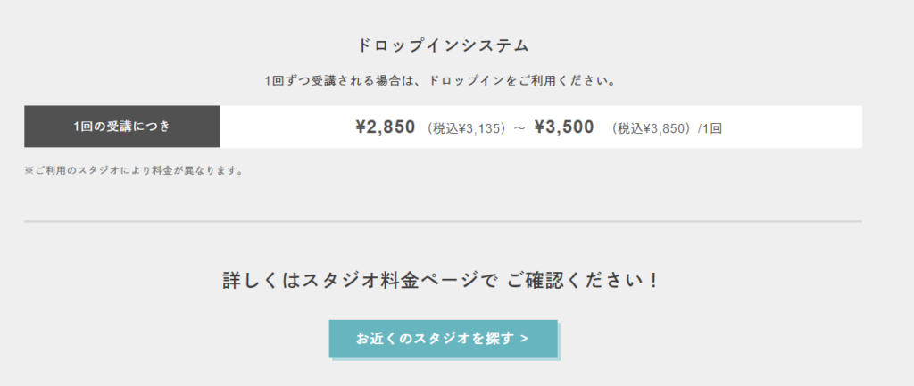入会金(税込¥1,100)+施設利用料(税込¥2,530)+ドロップイン(税込¥3,135)~(税込¥3,850)/1回の料金を支払わなければいけません。