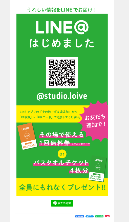②ロイブのラインお友達追加で1回無料券プレゼントを利用。